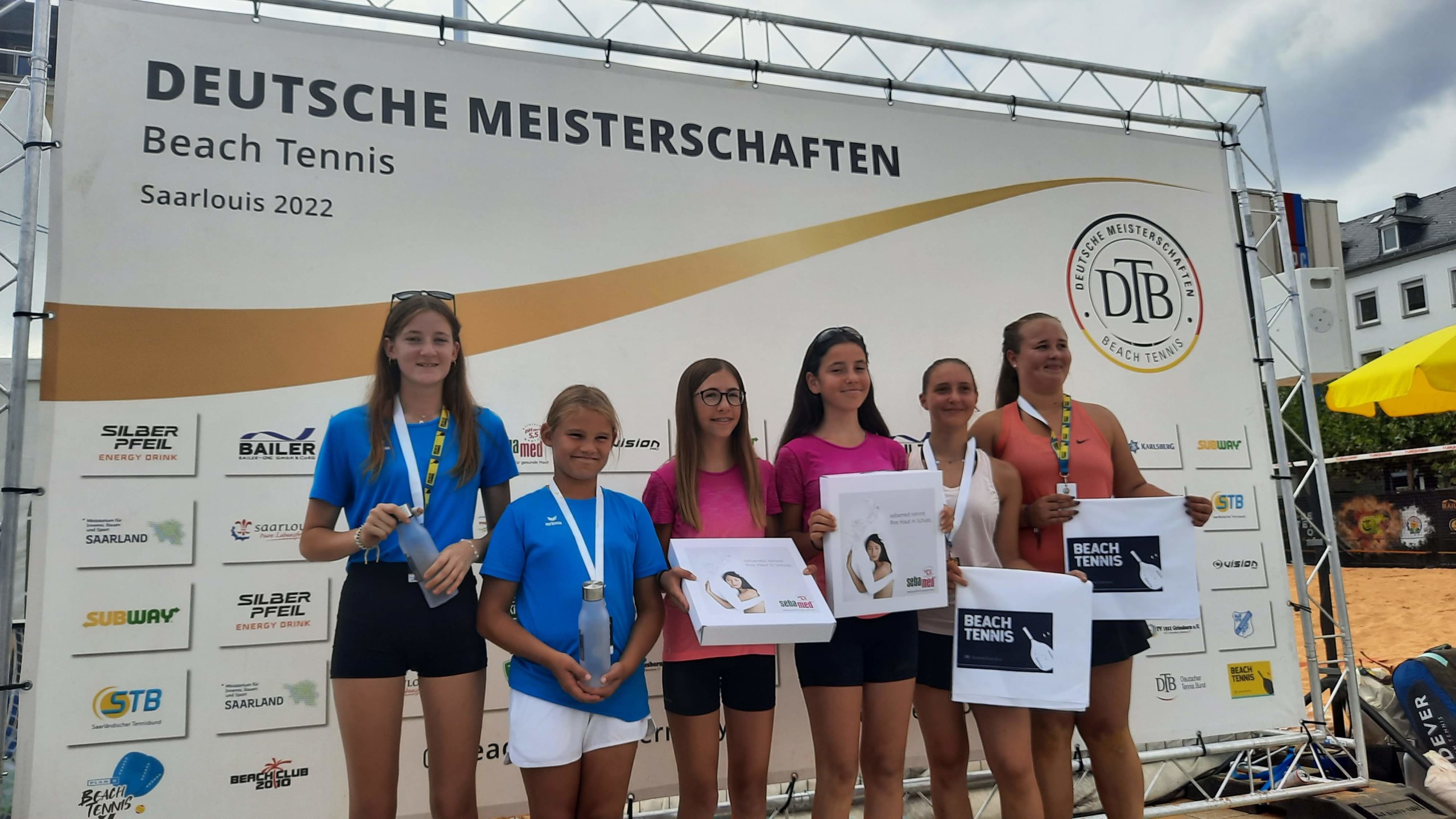 Auch Jugendspieler des Tennisclubs waren in Saarlouis vertreten. Als jüngste Spieler mit zehn bzw. neun Jahren in der Klasse Juniorinnen U18 wagten sich Joelina Herbst (TC Vimbuch) im Team mit Isabella Friedmann (TC Greffern) und in der gleichen Altersklasse Anina Herbst (TC Vimbuch) mit Malea Koch, ebenfalls vom TC Greffern, auf den Sand. Isabella und Joelina verloren leider ihr erstes Spiel, hatten aber trotzdem viel Spaß und tolle Erfahrung als Teilnehmer bei den Deutschen Meisterschaften mitgenommen.
